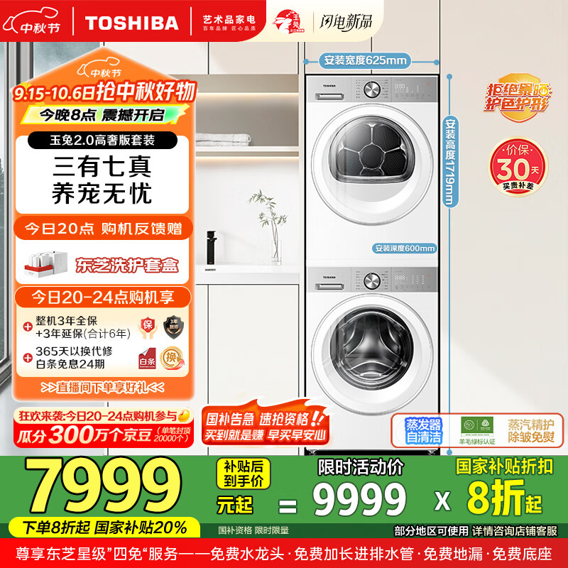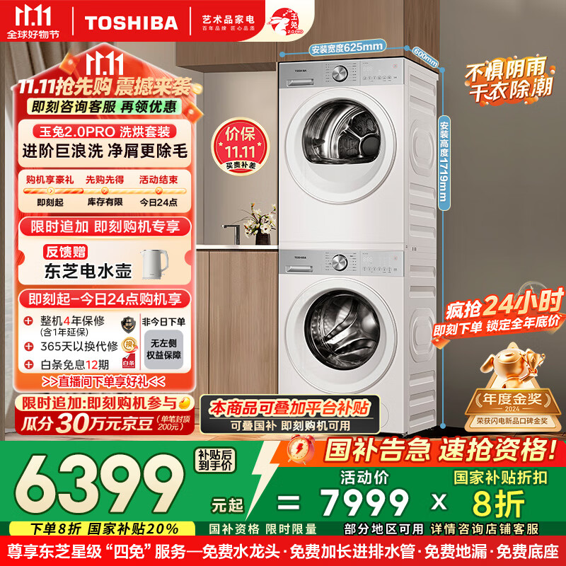 东芝(TOSHIBA)玉兔2.0高奢全变频洗烘套装 DG-10T183BW+T181BW 10KG滚筒全自动洗衣机+变频热泵烘干机 国家补贴