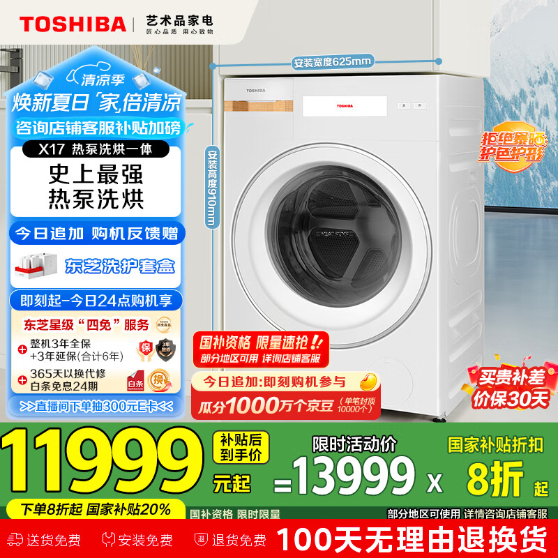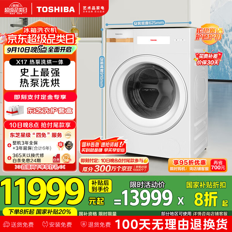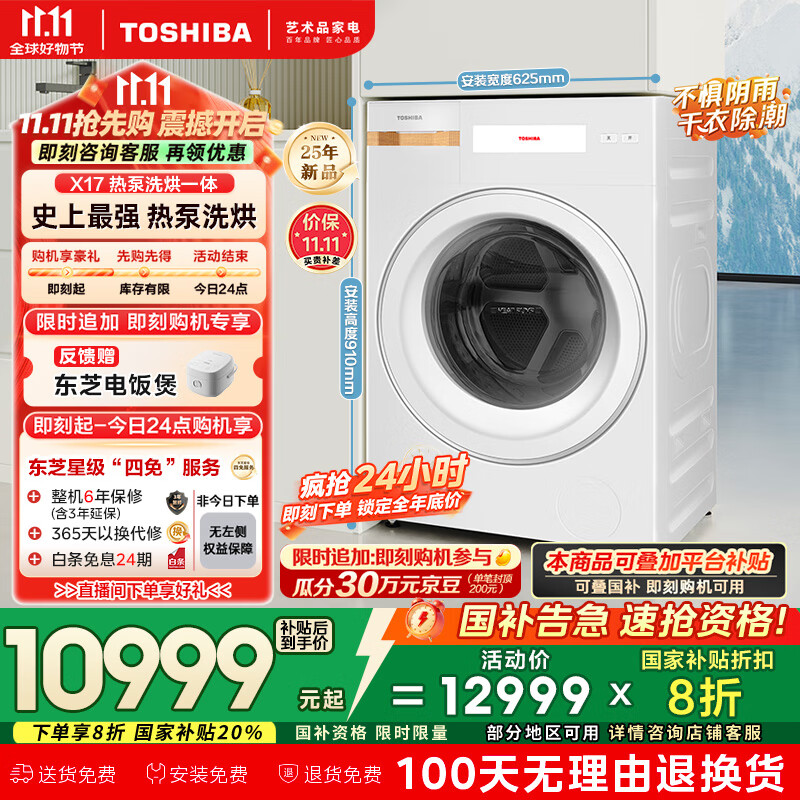 东芝(TOSHIBA)玉兔洗烘套装【DG-10T13BF+T13BF】10KG超薄滚筒洗衣机+变频热泵烘干机 以旧换新 家电国家补贴20%