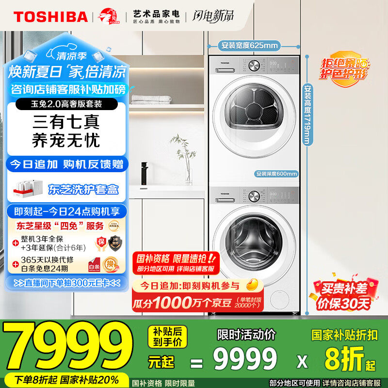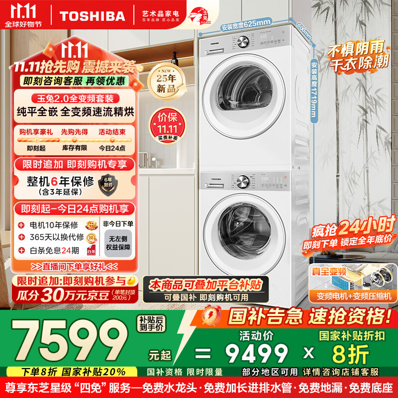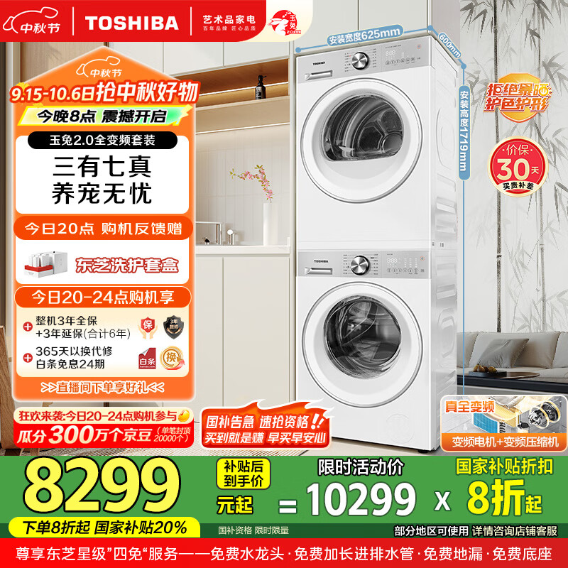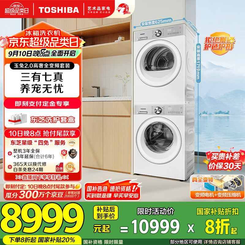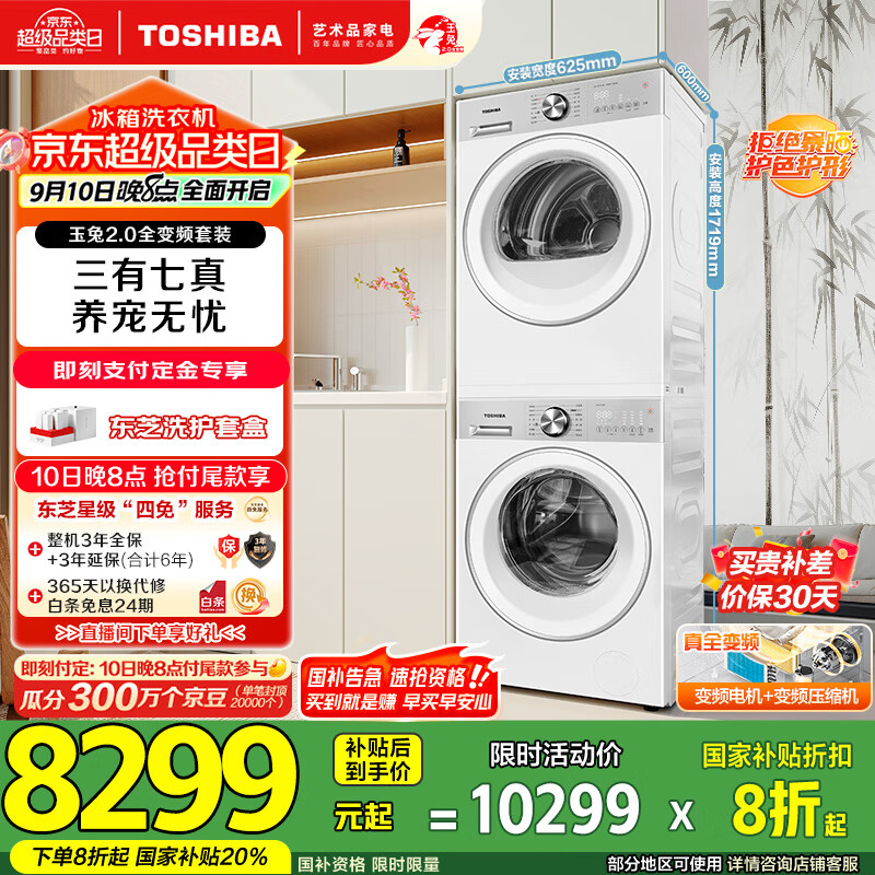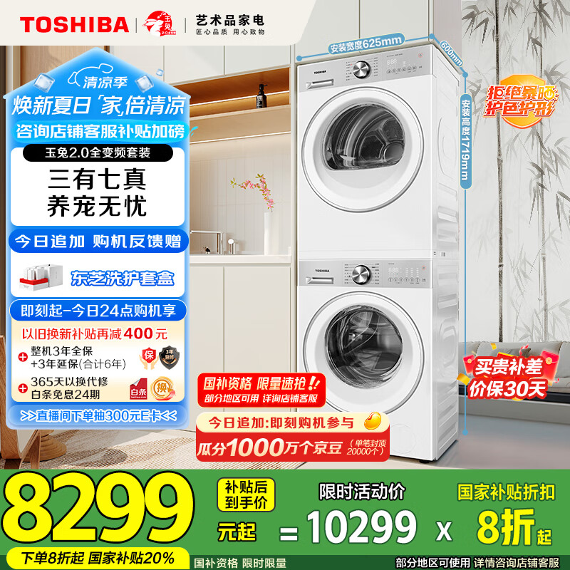 东芝(TOSHIBA)玉兔2.0全变频洗烘套装 【DG-10T18B+T181BW】10KG滚筒全自动洗衣机+变频热泵烘干机 国家补贴20%