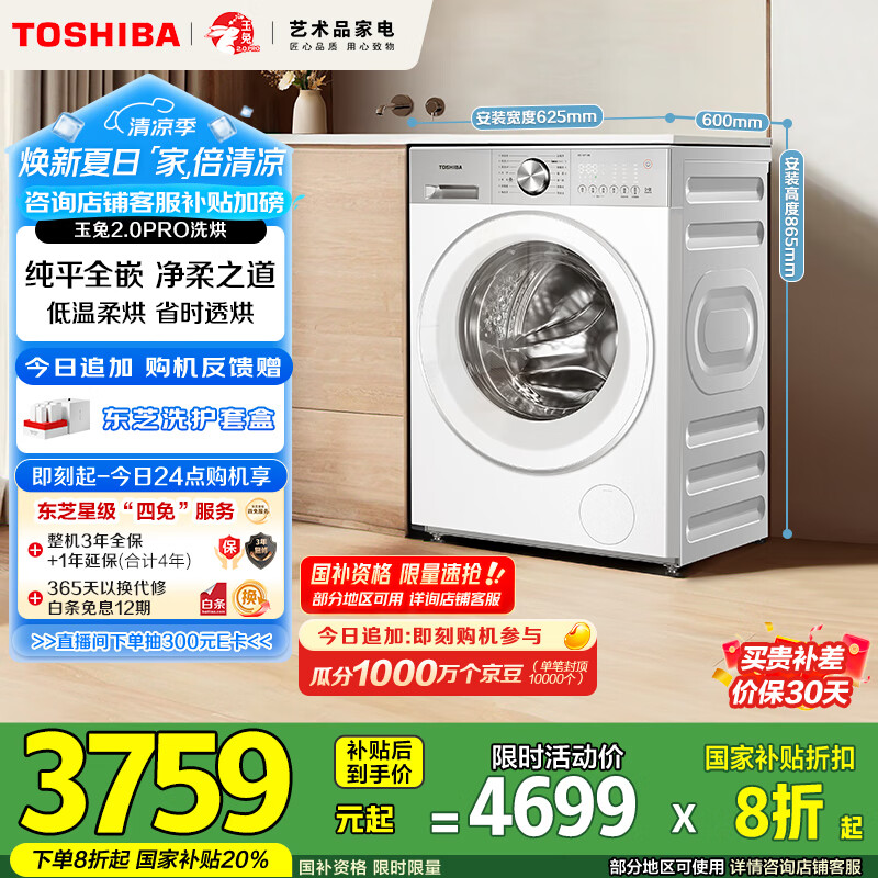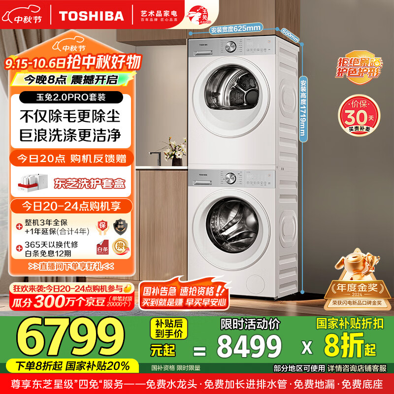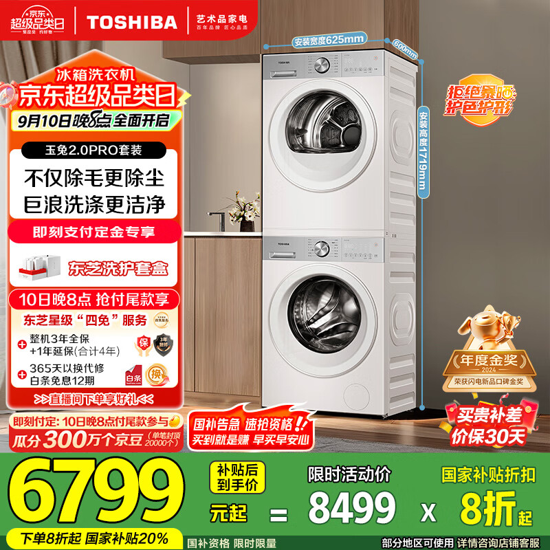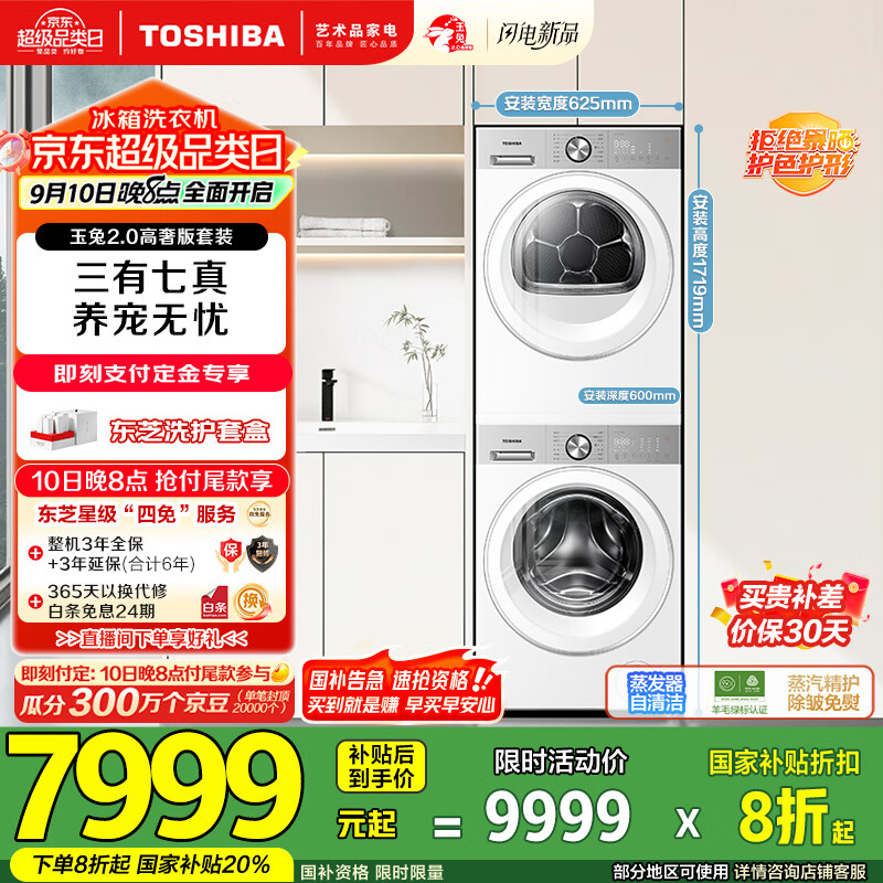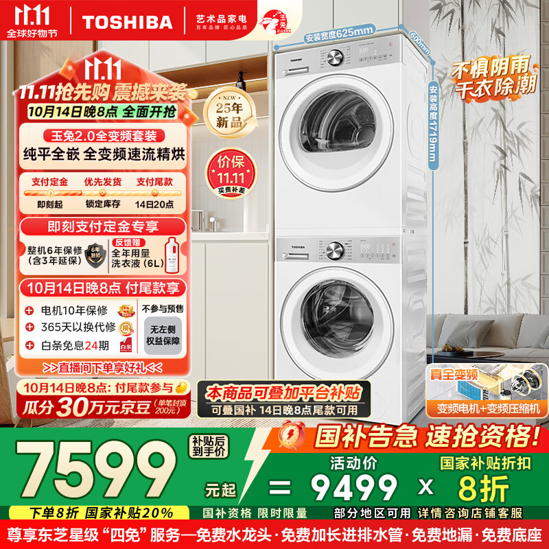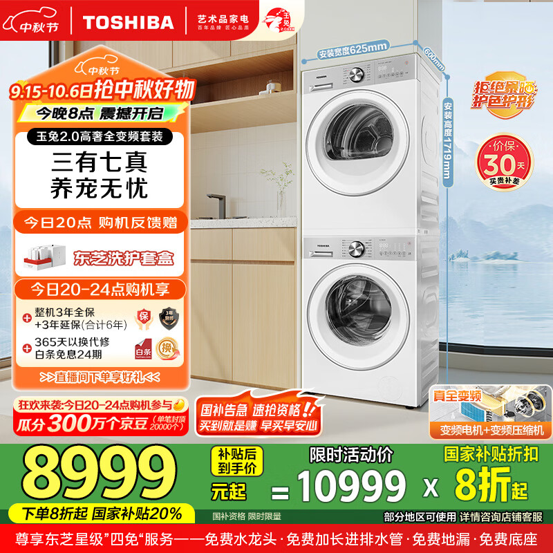 东芝(TOSHIBA)玉兔2.0全变频洗烘套装 【DG-10T18B+T181BW】10KG滚筒全自动洗衣机+变频热泵烘干机 国家补贴20%